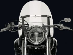The NATIONAL CYCLE Windshield Ranger Heavy Duty is the plainest version of an US chopper windshield: Slim line, protecting but compact height and high gloss chrome-plated steel carrier. This 4 mm strong Quantum coated high-tech Lexan® polycarbonate windshield in OEM quality is ten times more scratch-resistant and twice as much break-proof and UV-resistant than high impact acrylic. This high end screen is manufactured in the US, easy to install and absolute custom-fit owing to a type