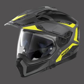 General Information: This is Nolan’s new top-of-the range road and off road crossover, the first on/off road helmet fitted with a removable protective chin guard on the market. It is characterized by an off road-inspired design, its many technical features and the ample range of colours and graphics available. Its compact size (thanks to the availability of two outer shell sizes), double P/J homologation, ultrawide visor, a particularly wide window compatible with mask use (even with the visor fitted and open), VPS sunscreen (adjustable to various positions and fitted with the automatic repositioning system), AirBooster Technology upper ventilation system, double lever Microlock2 retention system with micrometric regulation, innovative Clima Comfort inner padding (with micro-perforated fabric and adjustable neck-roll) and set up for the N-Com communication system make the N70-2 X the definitive on