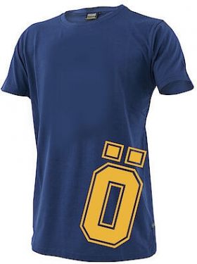 Blue round neck t-shirt with the official Öhlins logo printed at the front.
