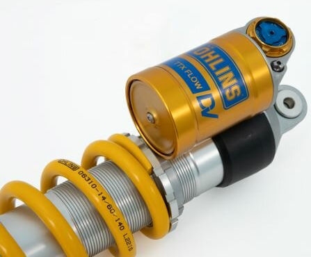 Öhlins Motorcycle type P : Monotube high pressure gas type of shock absorber with external “piggy back” reservoir.