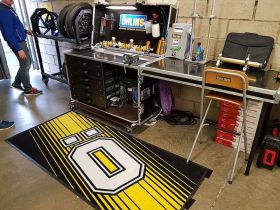 The Öhlins racing design carpet for your garage, workshop or home.