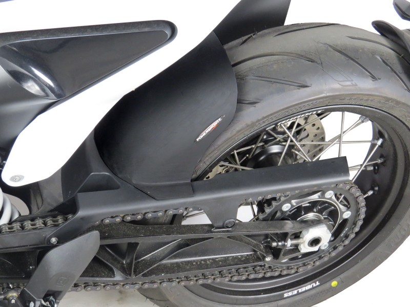 Powerbronze Huggers are designed to enhance the look of your bike while offering the practical advantage of reduced spray over the rear end of your machine.- Requires drilling of original chain guard and hugger to fit- Specific fitting kit (no tie wraps!)- Designed and manufactured by Powerbronze in Great Britain- Manufactured from High Impact plastic for a smooth internal finish. Rolled edges complete the product.- All huggers us "Posi-Flex" steel sleeved rubber mounting points to dampen vibration and avoid stress cracking- The exterior finish does not require painting and is UV protected to avoid sun damage