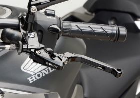 The super-light PROTECH clutch lever Race offers a variety of adjustment options and impresses with its sporty, aggressive design. The lever, made from 6061-T6 aluminum using the full milling process, is extremely stable and light.The distance to the bar is even during riding 6-times adjustable. It has a stepless adjustable lever length (2 to 4 fingers). Moreover, the PROTECH clutch lever Race is folding so that it will be functioning almost certainly even after falling. Ready to mount including adapter. With ABE.
