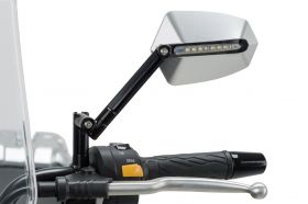 Enhance the R-image of your bike, giving it a more aggressive and competitive character with Puig GTI rearview mirrors. Machined from billet aluminium, with an anodized rear end and homologated, it will be the perfect accessory for your motorcycle. PUIG presents the piece in two finishes, black or anodized aluminium and up to 4 different models. Thanks to its machining, the GTI mirror is adjustable both in inclination and height and has antiglare glass to avoid vision problems while riding. The main highlight of the mirror, in addition to its looks, is that it has an integrated indicator on it which will add safety for both the rider and the rest of the vehicles. Puigs GTI rearview mirror can be mounted to a rod or original fairing of the motorcycle. Includes adapter kit M10x1.25 (left thread).