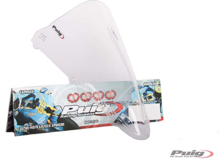 Give your bike the competitive character youve always looked for with the Puig Racing screen. Manufactured in 3mm high impact acrylic, resistant and long-lasting material rounded to> 2mm (complying with German TÜV regulations), thanks to its double height, the effect of air hitting on the helmet will be greatly reduced. This screen is available in two models: Z-Racing and R-Racer, depending on the model. The design of the Z-Racing screen has been tested in the wind tunnel, improving the aerodynamic coefficient and the protection against wind gusts by 12.7% (upright position) with respect to the original model and by 61% in racing position. On the other hand, the R-Racer screens, apart from being studied in the wind tunnel, are developed together with racing teams from the SBK World Championship and Endurance, achieving a perfect balance between protection and aerodynamics. The assembly of the piece does not require modifications and is accompanied by an exhaustive aerodynami