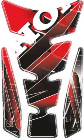 Three parts tank protector: central section with the name of the motorcycle brand and two other on the sides. We have several models with the names of the main motorcycle manufacturers. For certain models, more than one color is available.