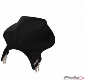 Renew your bikes fairing with the new Cockpit lights from the Puig Street Line round headlight screens. Thanks to its particular design, it is a fairing that stands out for its quality and ease of assembly. Made of polycarbonate, it will be strong and resistant to possible impacts and will increase the aerodynamic capacity of the bike. In addition to its resistance, the Cockpit has the mission to provide a differentiating touch to your bike and is available in a wide range of colors: red, yellow, blue, black, transparent, smoky and dark smoked. Puig has a universal fairing model adaptable to the great majority of motorcycles with round headlights, but for some specific models a special adaptation kit is available. The Cockpit Bridle Assembly is an easy task, thanks to its two attachment points, and comes with a very visual instruction booklet. The Cockpit Brushless is a product certified by the German TÜV and has the ABE 38188 approval.
