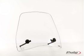 At popular request, the Trafic fairing was designed by the user to reduce the height of the Puig screen, for the T.S. windshield. An urban and cosmopolitan design, with great protection against wind and cold, but with a lower screen design that allows a better aerodynamic condition. Made of 3mm polycarbonate, Puig offers the option of acquiring the piece in clear or smoked clear finish. For the installation of the Trafic windshield, the manufacturer offers the piece with a special kit for finished specific models of Scooters. If required, Puig also offers an universal model for those bikes that need it together with a complete fixing kit. The part contains ABE approval certificate 38120 and TÜV.