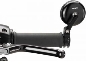 Add a retro touch to your motorcycle with this new PUIG rearview mirror. Simple and elegant, it will be the perfect option to give your motorcycle a vintage look thanks to the design’s minimalist lines. Its two finishes, black or aluminium, will fit perfectly with your motorcycle’s look by enhancing its retro style. It is a resistant and quality part since it is machined from billet aluminium and later anodized. It is adjustable both in inclination and in height. It adapts to the handlebar end of the motorcycle in a simple way. As for the assembly, the Tracker rearview mirror may require adapters in certain models to attach to the motorcycle. The Rearview Tracker is a non-homolagated product and its sizes are 58 mm in diameter, 92 mm in height and 72 mm in width (from the base) and in reference to the glass, the rearview mirror uses an antiglare glass to improve visibility during riding and it’s available for handlebars with internal diameter 13/18 mm.