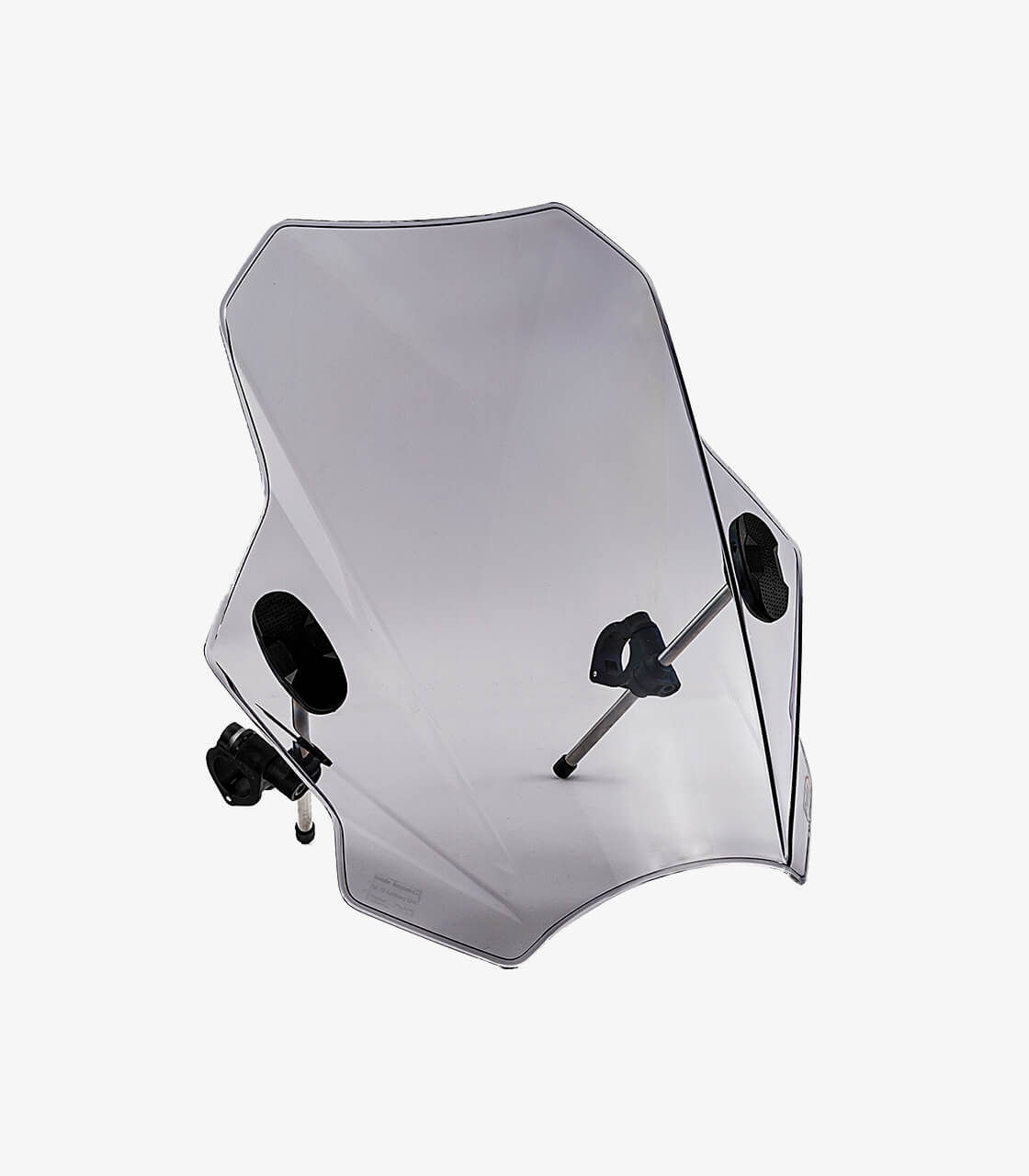Renew the image of your motorcycle and protect yourself against possible inclement weather during the ride with the new universal Bat windshield from Puig. Manufactured in 3mm polycarbonate, material with great resistance to possible impacts and impeccable behaviour against the wind, will give your bike a greater aerodynamic capacity while enhancing its aesthetic line with a new more aggressive and sporty look. The clamping of the fairing will be excellent thanks to its two clamping points. The installation of the piece is very easy and comes with a complete kit. For those models that need it, an extra mounting kit is available. The part includes an ABE approval certificate 38188 and TÜV.