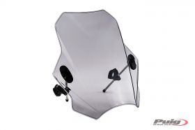 Renew the image of your motorcycle and protect yourself against possible inclement weather during the ride with the new universal Bat windshield from Puig. Manufactured in 3mm polycarbonate, material with great resistance to possible impacts and impeccable behaviour against the wind, will give your bike a greater aerodynamic capacity while enhancing its aesthetic line with a new more aggressive and sporty look. The clamping of the fairing will be excellent thanks to its two clamping points. The installation of the piece is very easy and comes with a complete kit. For those models that need it, an extra mounting kit is available. The part includes an ABE approval certificate 38188 and TÜV.