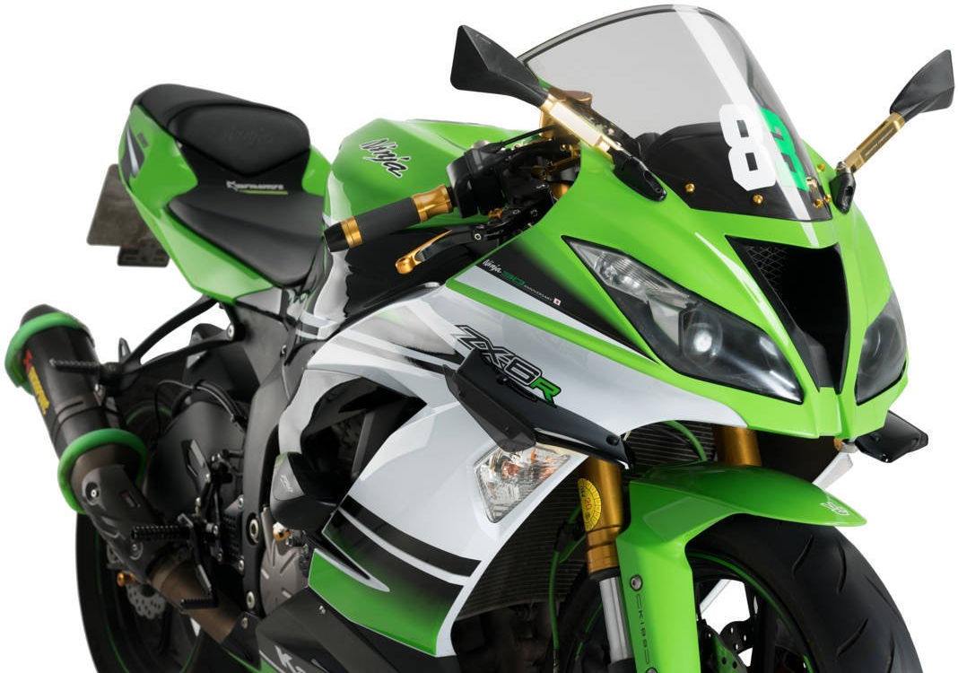Protect and enhance the aesthetic character of your bike with the new Downforce spoilers from Puig. Developed and designed according to Moto GP evolution, the Downforce spoilers work mostly for 1000cc sport motorcycles, but Puig also offers the possibility of adapting them to sport oriented 600cc motorcycles. It is a light weight part that will give your bike a high end competition character and it comes with winglets of various colors to better match your motorcycle, this way you will achieve the degree of personalization and exclusivity that you value so much. The piece has been tested in various circuits, with the collaboration of the Kawasaki Racing Team, it has become clear that the Downforce spoilers improve the grip of the front wheel under braking, greater stability in straights and changes of direction. In addition, it generates a greater antiwheelie effect in strong acceleration where it will better hook the bike to the road. Available models: 10