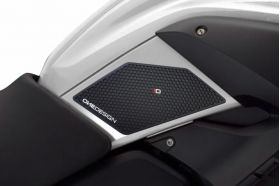 Customize the side of your motorcycles tank with the Puig side tank protectors. Manufactured in rubber, they provide a unique and sporty look to the motorcycle, avoiding scratches in a sensitive area. Thanks to the Onedesign design, this piece gives the tank greater grip and increases the riders control over the bike. In addition, it make you feel the pleasant touch of the rubber and it’s easy to place along the lines of the deposit itself. To maintain the look of the motorcycle, the tank protectors can be purchased in black and there are different sizes suitable for a given motorcycle model.