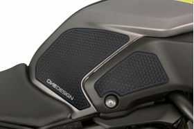 Customize the side of your motorcycles tank with the Puig side tank protectors. Manufactured in rubber, they provide a unique and sporty look to the motorcycle, avoiding scratches in a sensitive area. Thanks to the Onedesign design, this piece gives the tank greater grip and increases the riders control over the bike. In addition, it make you feel the pleasant touch of the rubber and it’s easy to place along the lines of the deposit itself. To maintain the look of the motorcycle, the tank protectors can be purchased in black and there are different sizes suitable for a given motorcycle model.