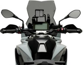 Touring screens, developed by Puig in Barcelona, are designed with the objective to aerodynamically protect the rider without affecting his/her field vision. In addition, these screens fit perfectly with the adventure style and aesthetics of the trail models thanks to their wide range of colors and different sizes.