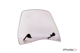 At popular request, the Trafic fairing was designed by the user to reduce the height of the Puig screen, for the T.S. windshield. An urban and cosmopolitan design, with great protection against wind and cold, but with a lower screen design that allows a better aerodynamic condition. Made of 3mm polycarbonate, Puig offers the option of acquiring the piece in clear or smoked clear finish. For the installation of the Trafic windshield, the manufacturer offers the piece with a special kit for finished specific models of Scooters. If required, Puig also offers an universal model for those bikes that need it together with a complete fixing kit. The part contains ABE approval certificate 38120 and TÜV.