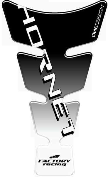 Tank pad with a standard form featuring the motorcycle model in the central section, either black or silver depending on the color of bike tank. We have two colors: black and silver. We do not have specific tank protectors for all motorcycle models on the market but for the most popular ones.