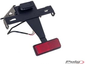 Replace the original license plate holder of your motorcycle with the Puig license plate holder. Its elevated location gives a Racing character to your motorcycle. The set combines pieces of steel finished in epoxy paint with pieces in Polyamide, achieving an important reduction of weight with respect to the original support. Some of the supports have the option of being fixed or adjustable according to the reference that adheres to each motorcycle. The support comes with space for the indicators, remember that it is not suitable for the originals, and is adjustable up to 3 cm. Note that the support is not served with intermittent, they must be purchased separately. Another point to keep in mind is that connectors are not used to connect the license plate light. Puig serves the piece together with a kit that includes lighting group of the most catadioptric license plate, approved according to model. The assembly of the piece is very simple and comes with instructions. The Pu