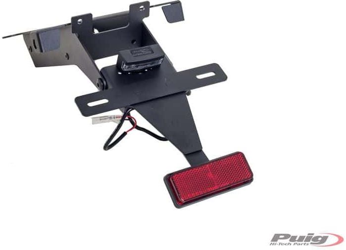 Replace the original license plate holder of your motorcycle with the Puig license plate holder. Its elevated location gives a Racing character to your motorcycle. The set combines pieces of steel finished in epoxy paint with pieces in Polyamide, achieving an important reduction of weight with respect to the original support. Some of the supports have the option of being fixed or adjustable according to the reference that adheres to each motorcycle. The support comes with space for the indicators, remember that it is not suitable for the originals, and is adjustable up to 3 cm. Note that the support is not served with intermittent, they must be purchased separately. Another point to keep in mind is that connectors are not used to connect the license plate light. Puig serves the piece together with a kit that includes lighting group of the most catadioptric license plate, approved according to model. The assembly of the piece is very simple and comes with instructions. The Pu
