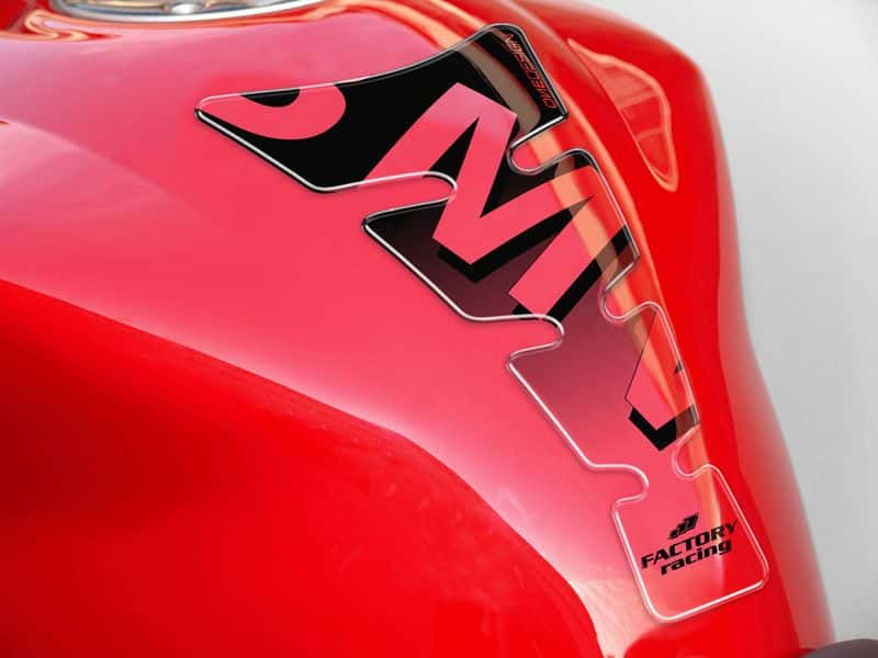 Tank pad with a standard form featuring the motorcycle model in the central section, either black or silver depending on the color of bike tank. We have two colors: black and silver. We do not have specific tank protectors for all motorcycle models on the market but for the most popular ones.