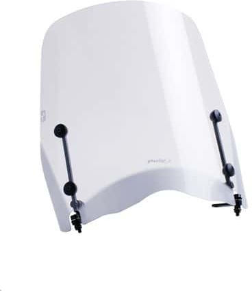 Direct evolution of the first windshield created by Puig, The Carenabris T.S. is the best value option by users to protect themselves during a journey by the city on their motorcycle, scooter or moped. Manufactured in 3mm PMMA (Polymethylmethacrylate), material very resistant to possible impacts and with great aerodynamic capacity, it will be the best ally for journeys by the city. In addition to the protection function against impacts and inclement weather, the T.S. will give your bike an unparalleled aesthetic improvement. Puig offers this screen for the vast majority of Scooter models, but if a specific model is required, a T.S. universal screen is available which includes a complete fixing kit to attach to any market model. In addition to the kit, Puig puts at your disposal a complete instruction booklet to facilitate the installation work of the new screen.