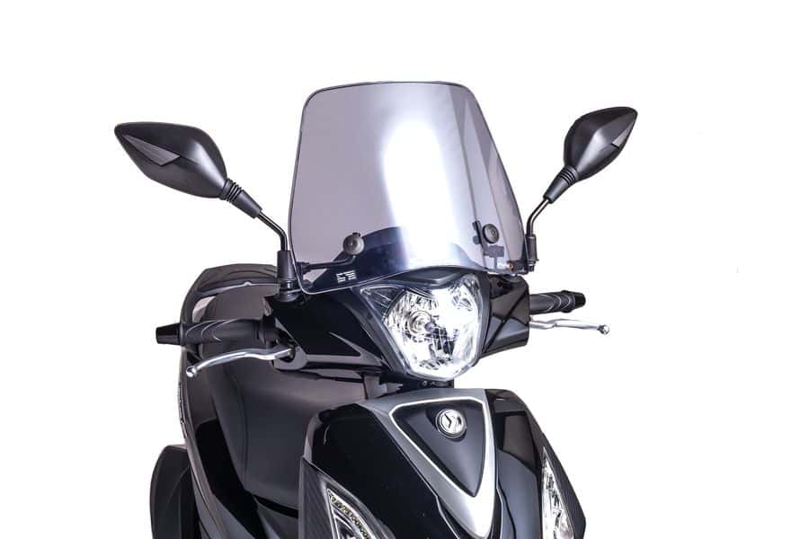 At popular request, the Trafic fairing was designed by the user to reduce the height of the Puig screen, for the T.S. windshield. An urban and cosmopolitan design, with great protection against wind and cold, but with a lower screen design that allows a better aerodynamic condition. Made of 3mm polycarbonate, Puig offers the option of acquiring the piece in clear or smoked clear finish. For the installation of the Trafic windshield, the manufacturer offers the piece with a special kit for finished specific models of Scooters. If required, Puig also offers an universal model for those bikes that need it together with a complete fixing kit. The part contains ABE approval certificate 38120 and TÜV.