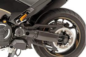 The Puig belt guard designed specifically for Yamaha T-Max. Available in black, it is made of anodized aluminum of 3 mm thickness, which gives it the rigidity necessary to protect the driver and the passenger from possible friction, as well as the belt itself from possible blows produced by objects that are in the road With this component, the maxiscooter has improved its security and at the same time personalizes its sporty and elegant image.
