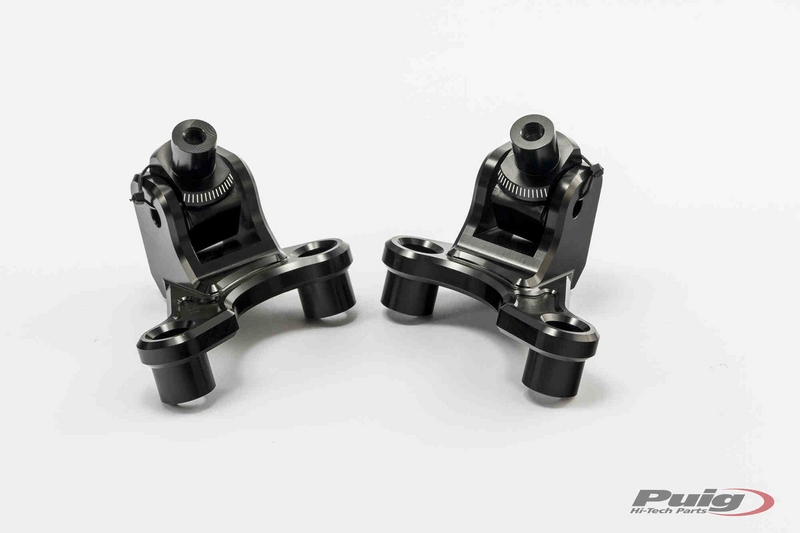 HI-TECH Footpegs with ergonomic design.Features: - Less weight to 90 grams (racing footpegs and racing footpegs with rubber) and 130 grams (trail footpegs). - Increase free height. - Adjustable inclination. - Precise adjuster. - Available in different colors (heads only in black). PUIG offers two footpegs models for R bikes, naked and maxiscooter  (1)(2) and one model for trail bikes (3). IMPORTANT: ALL OUR FOOTPEGS MOUNTED THE SAME ADAPTERS.