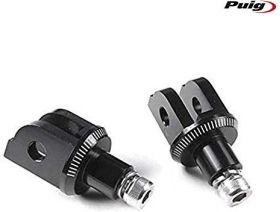 HI-TECH Footpegs with ergonomic design.Features: - Less weight to 90 grams (racing footpegs and racing footpegs with rubber) and 130 grams (trail footpegs). - Increase free height. - Adjustable inclination. - Precise adjuster. - Available in different colors (heads only in black). PUIG offers two footpegs models for R bikes, naked and maxiscooter  (1)(2) and one model for trail bikes (3). IMPORTANT: ALL OUR FOOTPEGS MOUNTED THE SAME ADAPTERS.
