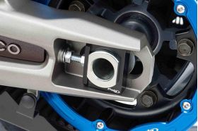 The set of tensioners for the Yamaha T-Max rear wheel by Puig allow you to precisely adjust the belt of the best-selling Japanese scooter. They are manufactured in aluminum and are machined with a graduated measuring scale, which allows to correct with precision the tension of the transmission belt. In our catalog we have a specific design for both versions from 2012 and for units from 2017, available in black, which in addition to being functional improve the looks of the rear section of the Yamaha sports scooter.