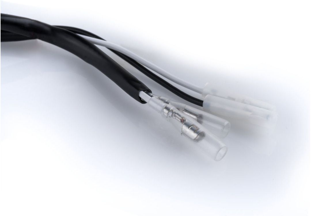 The extend turn signals system allows adapting Puigs turn signals to a wide variety of motorcycle models. On many occasions, the features of each bike creates a necessity  to find a suitable solution in order to achieve a professional assembly of the universal turn signals. This accessory is available with specific connections for Honda, Kawasaki, Suzuki and Yamaha models, as well as a universal connection.