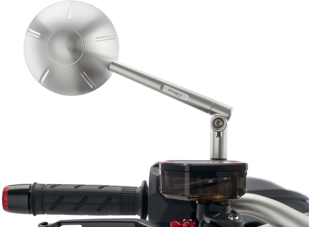 Puig knows the importance of the retro/vintage look for our riders, thats why we launched the new Puig Retro rearview mirror that will enhance the looks of your motorcycle. In addition, it will provide the characteristic functionality of the Catalan brand since it is adjustable both in inclination and in height. The Retro Puig rearview mirror is designed to mimic the front of an aircraft to deal with wind gusts and improve the aerodynamics of your bike. The mirror is antiglare to ensure the best and safest riding on the bike. The part is machined from billet aluminium, with subsequent anodising, to ensure maximum resistance of the mirror. The piece can be adapted to both the handlebar and the fairing of the vehicle, therefore, you should consult the exact model required by your motorcycle. Puig has an M10x1.25 adapter kit (left thread).