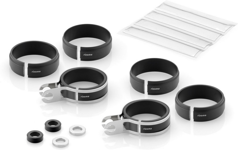 The kit includes 3 spacers to allow fitment to fork tubes with outside diameters of 39/41/43mm.The kit includes 3 spacers to allow fitment to fork tubes with outside diameters of 39/41/43mm.