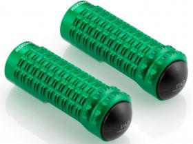 Machined from aluminium billet, they give improved grip - each groove is precision machined with two different tools on the same axis - both on the straights and around bends. The central section, for riding on the straight, supports the foot without fear of slipping, and drains water and debris from its grooves. Similarly, the outer section stops the foot slipping around corners, and gives significantly better grip than normal pegs.