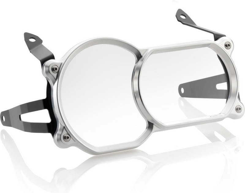 Rizoma conceived the Headlight Guard, seeking the right balance between practicality, thanks to the fast and easy install, aesthetics and functionality. The protection gives adequate shelter to the GS optical unit, frame entirely machined from the billet aluminum and high quality protective Plexiglas®. Attention, the Headlight Guard ZBW064 has been developed for Off-Road use.