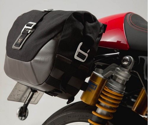 Plays well with steel: Legend Gear LC1 side bag is equipped with a convenient quick lock system for SLC steel side carrier. A combination of coated canvas sailing material with robust Napalon synthetic leather supports the vintage design oft the soft luggage line. The bike-specific SLC side carrier allows easy and safe mounting on original mounting points to the bike. SLC side carrier, made for Triumph Thruxton 1200, adapts perfectly to the design of the bike. Set includes two Legend Gear LC1 side bags, SLC side carriers and mounting material.