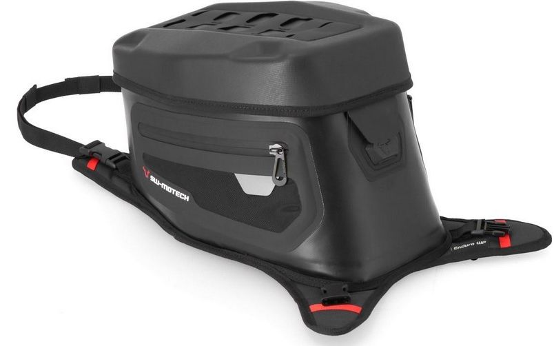 We can't offer tank rings for some bikes - The PRO Enduro WP strap tank bag is the right choice for these bikes: When you stop to refuel, snap buckles allow you to move or fold it away and access to the fuel filler cap is clear. The PRO Enduro WP strap tank bag fits like a glove to touring bikes with sloping fuel tanks and is waterproof: Your luggage is safe from rain and splashing water in any weather. The overlapping lid made made from stable EVA is securely welded to the TPU body. Thanks to the plastic welding, the materials join seamlessly and securely with one another.