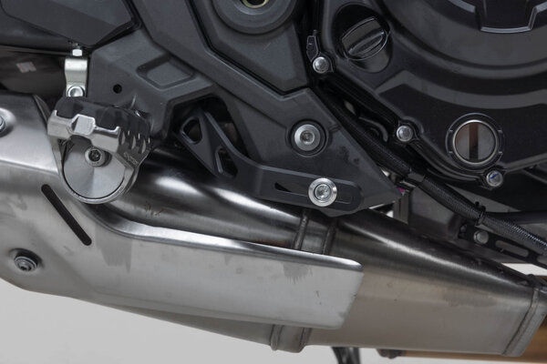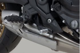 The adjustable brake pedal made of high-quality milled aluminum with HART-COAT® finish allows for optimized handling and control of the brake. The length of the SW-MOTECH brake pedal can be adjusted by 5 cm, so it suits every foot and every driving style. The tread pattern increases grip and provides improved stability for sporty driving and longer tours. With the Adventure tread (sold separately) you can improve brake pedal handling, especially during offroad driving while standing.