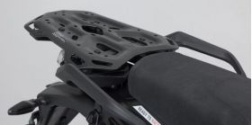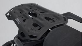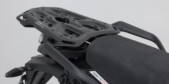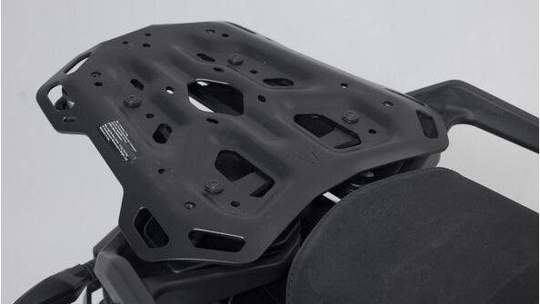 Ready for big adventure: Our ADVENTURE-RACK proves itself with its extreme durability and function-oriented shape. More than 15 years of experience producing racks, combined with feedback from customers and test riders, went into the development of this aluminum rack Material thickness, weight and geometry have been optimized for demanding tours and off-road use. The bike-specific attachments guarantee the best fit and easy mounting on original attachment points. Specifically developed for long-distance enduros, large street and sport touring machines, the ADVENTURE-RACK offers a large contact surface. Numerous, large lashing eyes provide secure hold for tail bags. The functional bores require adapter kits for attaching top cases by SW-MOTECH, Givi, Krauser and Shad or SysBags.