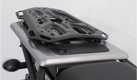 Ready for big adventure: Our ADVENTURE-RACK proves itself with its extreme durability and function-oriented shape. More than 15 years of experience producing racks, combined with feedback from customers and test riders, went into the development of this aluminum rack Material thickness, weight and geometry have been optimized for demanding tours and off-road use. The bike-specific attachments guarantee the best fit and easy mounting on original attachment points. Specifically developed for long-distance enduros, large street and sport touring machines, the ADVENTURE-RACK offers a large contact surface. Numerous, large lashing eyes provide secure hold for tail bags. The functional bores require adapter kits for attaching top cases by SW-MOTECH, Givi, Krauser and Shad or SysBags.