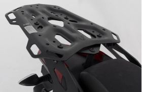 Ready for big adventure: Our ADVENTURE-RACK proves itself with its extreme durability and function-oriented shape. More than 15 years of experience producing racks, combined with feedback from customers and test riders, went into the development of this aluminum rack Material thickness, weight and geometry have been optimized for demanding tours and off-road use. The bike-specific attachments guarantee the best fit and easy mounting on original attachment points. Specifically developed for long-distance enduros, large street and sport touring machines, the ADVENTURE-RACK offers a large contact surface. Numerous, large lashing eyes provide secure hold for tail bags. The functional bores require adapter kits for attaching top cases by SW-MOTECH, Givi, Krauser and Shad or SysBags.