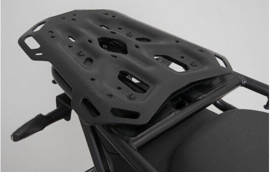 Ready for big adventure: Our ADVENTURE-RACK proves itself with its extreme durability and function-oriented shape. More than 15 years of experience producing racks, combined with feedback from customers and test riders, went into the development of this aluminum rack Material thickness, weight and geometry have been optimized for demanding tours and off-road use. The bike-specific attachments guarantee the best fit and easy mounting on original attachment points. Specifically developed for long-distance enduros, large street and sport touring machines, the ADVENTURE-RACK offers a large contact surface. Numerous, large lashing eyes provide secure hold for tail bags. The functional bores require adapter kits for attaching top cases by SW-MOTECH, Givi, Krauser and Shad or SysBags.