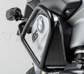 Using the same mounting points, upper crash bars are not compatible with BMW's additional LED high beams.