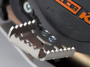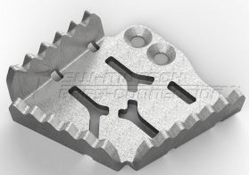 The serrated surface prevents slip off from the brake lever in wet conditions. Brushed aluminum, bended.