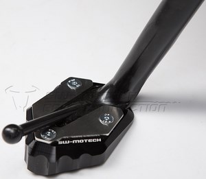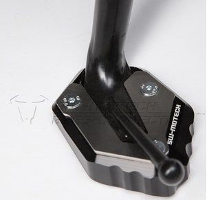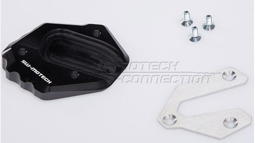 This side stand extension offers a large contact surface to improve the motorcycle’s parking footprint on rough surfaces and soft ground. The extension is being CNC milled from high strength aluminum alloy, the combination of anodized aluminum and stainless steel provides great durability under all climate conditions. The grooved upper ledge helps the driver to swing out the side stand easily even while wearing heavy boots.
