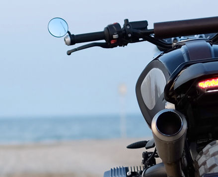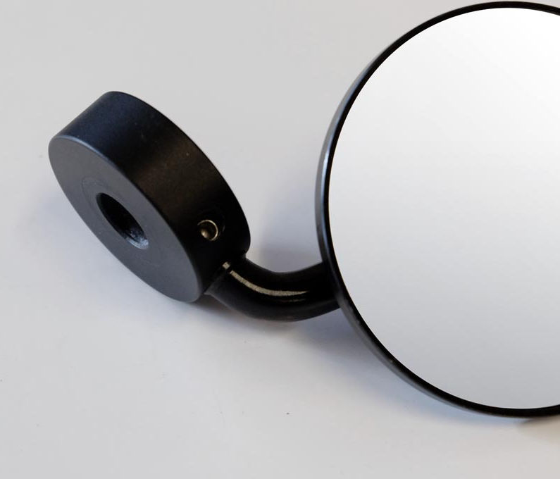 Mirror in Black anodized CNC milled aluminum. This single mirror can be mounted on the right or left side of the handlebar. The mirrors are always a problem for the finished look of the bike, but in this case we have solved this problem in a very minimalistic way.