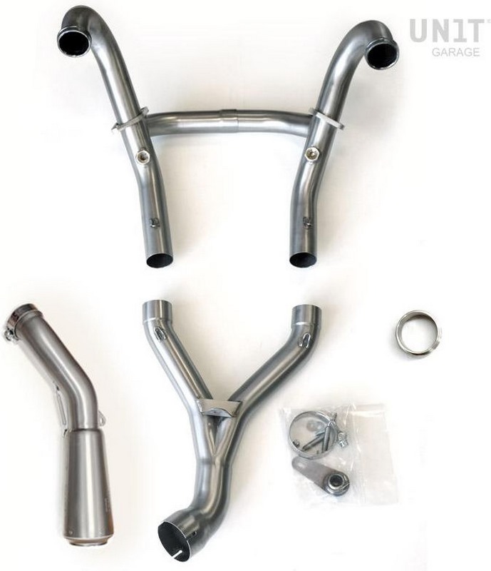 Worked entirely by hand with removable DB-Killer, The kit weighs 5.4 kg less than the original, and is equipped with everything needed for installation. It improves throughout the delivery of the engine and does not need specific mappings to the control unit. The exhaust is not approved because the catalyst has been removed, but the noise is at a normal level and your sound of your boxer will make you crazy! The oxygen sensors can be left in place or removed, the caps are included.