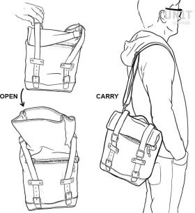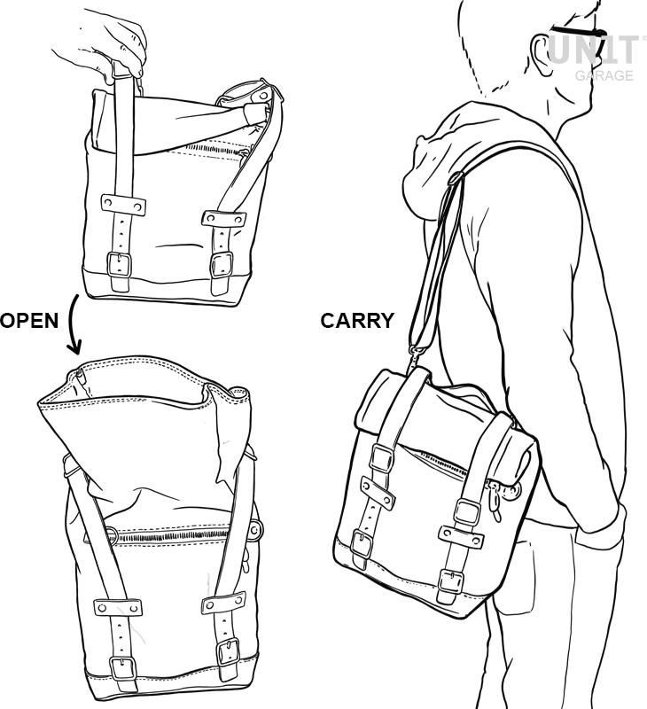 Simple and pure with beautiful details in 3mm thick leather trim. It attaches easily to our sub frame with the quick release system Cod.U000 already installed on the back of the bags. With the included key the quick release system can be closed, locking the bag to the frame. It is big enough to easily fit a 15" laptop, and is equipped with a large zipped pocket on the front for easy access to your phone and documents. Measurements: 32 cm Height (extendable in height up to 45 cm) width 24 cm depth 13 cm (from 10 up to 14 liter)