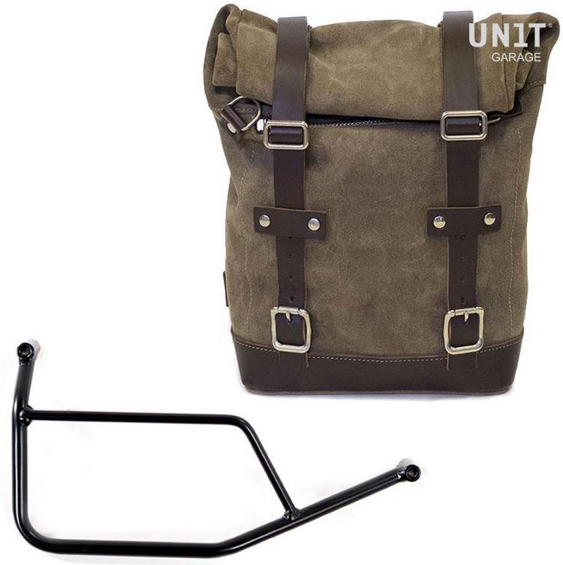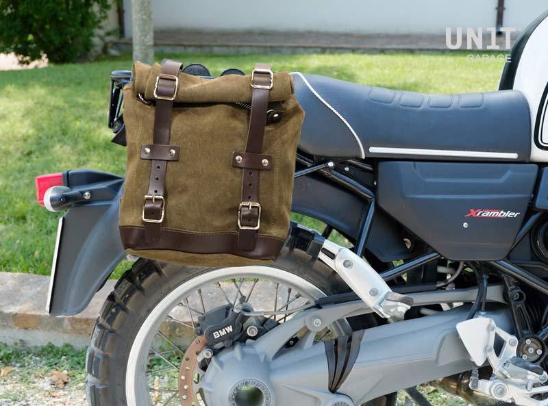 Side pannier made by hand in Italy in top quality rugged split leather treated with wax to make it waterproof.