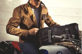 We designed these beautiful bags to be used on your bike, and once arrived at your destination. The bags are technical but at with great style. They are handmade in Italy in rugged Waterproof cotton of the highest quality. The details of the bag are made of 3 mm leather. A pure, simple and robust bag with all the necessary details to face every condition; aging with you on every trip. Thanks to its leather straps you can easily mount it on any luggage rack.
